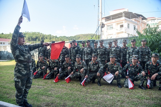 圖為教員對旗語進(jìn)行教學(xué)。