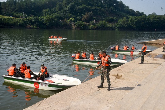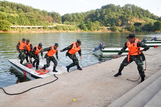 針對駐地雨季歷時(shí)較長、降雨量偏多,可能出現(xiàn)持續(xù)性暴雨過程,防汛形勢較為嚴(yán)峻的情況,此次集訓(xùn)把環(huán)境設(shè)險(xiǎn),把情況設(shè)全,把練技術(shù)、練心理與練作風(fēng)結(jié)合起來,按照理論講解與實(shí)際操作相結(jié)合、考核評比與綜合訓(xùn)練相結(jié)合的方法,對沖鋒舟機(jī)械理論、舷外機(jī)的安裝與啟動、故障排除、船艇直行、S型航行、水上營救等內(nèi)容進(jìn)行強(qiáng)化訓(xùn)練。