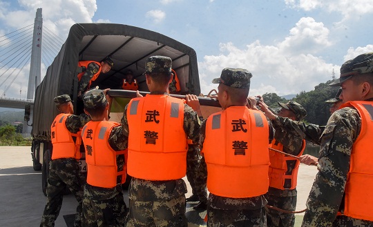 圖為官兵裝載舟艇器材。