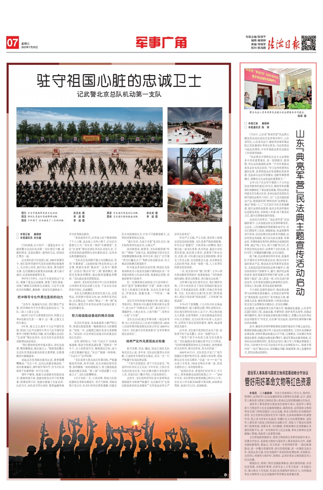 此外,解放軍濟(jì)南軍事檢察院加強(qiáng)軍地協(xié)作開展公益訴訟,既督促鐵路運(yùn)輸過程中軍人依法優(yōu)先制度落實(shí),又同步宣講解讀法律法規(guī)。濟(jì)南軍事法院通過公開開庭、以案釋法、司法建議等加強(qiáng)普法教育,拍攝法治微電影《擎護(hù)》,建設(shè)軍事法治教育基地,在講好法治故事的同時,普及民法知識;建立軍人軍屬法律援助工作站,與濟(jì)南市市中區(qū)司法局合作設(shè)立法律服務(wù)中心,探索矛盾糾紛“一站式”解決辦法;采取贈送書籍、現(xiàn)地授課、線上直播等形式,把民法典送到部隊(duì)。