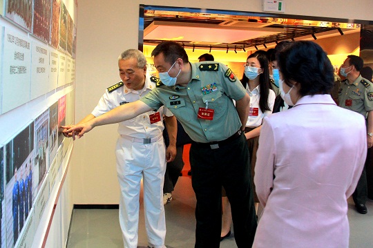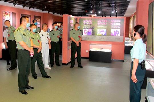 圖為與會人員參觀軍事法治警示教育室。