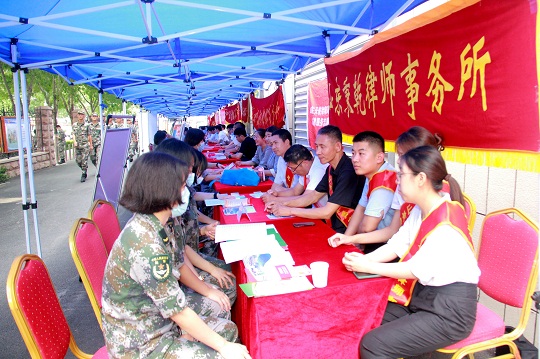 圖為軍地領(lǐng)導(dǎo)參觀指導(dǎo)法律服務(wù)大集。