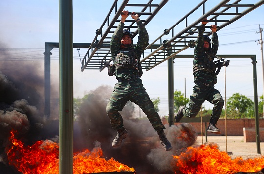 圖為特戰(zhàn)隊員進行突破障礙訓練。
