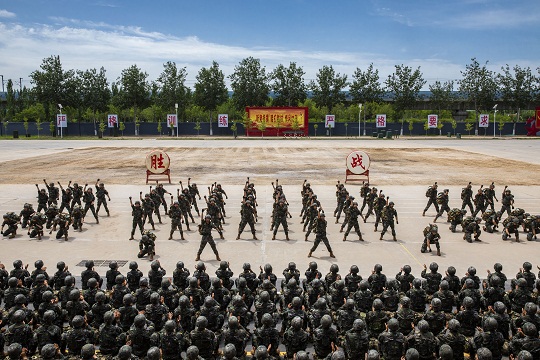 京郊,驕陽似火?!?名‘不法分子’向某高地逃竄,現命令你部迅速處置。”指揮員一聲令下,無人機即刻升空,精準鎖定目標,戰(zhàn)斗小組交替掩護逼近。“突擊!”隨著一陣槍響,“不法分子”應聲而倒。