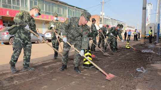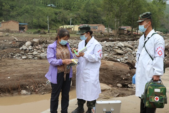 其余官兵在村子里幫助清理民房,安撫群眾,對(duì)不穩(wěn)固的圍墻、樹木等進(jìn)行加固或拆除,防止發(fā)生危險(xiǎn)。幾名軍醫(yī)和衛(wèi)生員挨家挨戶為村民檢查身體并送去藥品,一位村民緊緊握著軍醫(yī)相美娟的手,哽咽著說(shuō):“我們沒有遇到過(guò)這樣的事,幸虧有武警官兵幫助,真不知道怎么感謝親人!”