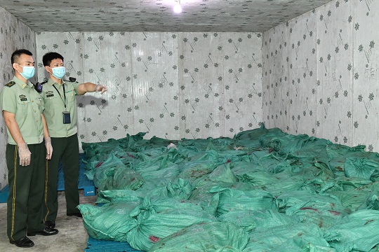 今年以來,海南檳榔種植業(yè)大幅減產(chǎn),鮮檳榔果價(jià)格持續(xù)飆升。該團(tuán)伙為牟取暴利,通過利用快艇海上轉(zhuǎn)運(yùn)和貨車夾藏?cái)y運(yùn)的方式將境外鮮檳榔果從海、陸兩個(gè)方向轉(zhuǎn)運(yùn)入瓊。近日,經(jīng)過分析研究和偵查,海南海警局執(zhí)法人員在全面摸清犯罪鏈條且抓捕時(shí)機(jī)成熟后,聯(lián)合海南省公安廳、海口海關(guān)緝私局、湛江市公安局、昆明海關(guān)緝私局等部門在瓊、粵、桂、滇四省統(tǒng)一開展收網(wǎng)行動(dòng)。各部門周密配合、協(xié)同作戰(zhàn)、海陸聯(lián)動(dòng),一舉斬?cái)嗔?個(gè)鮮檳榔果走私鏈條,查證涉案走私新鮮檳榔果360余噸。此案為海南海警局成立以來經(jīng)辦涉案走私鮮檳榔數(shù)量最大的一宗案件。