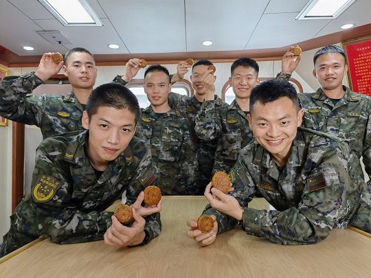 吃著月餅的漁民笑著表示感謝,“感謝你們的付出,正是因?yàn)橛心銈儯覀兊娜兆硬鸥影卜€(wěn)!”
