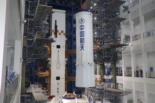 長(zhǎng)七A火箭一進(jìn)場(chǎng),試驗(yàn)隊(duì)隊(duì)員就忙得熱火朝天,大家正在將水平躺著的火箭豎立起來(lái)進(jìn)行總裝。在垂直總裝及單元測(cè)試階段,試驗(yàn)隊(duì)通過(guò)改進(jìn)總裝模式,將總裝時(shí)間縮短了3天。