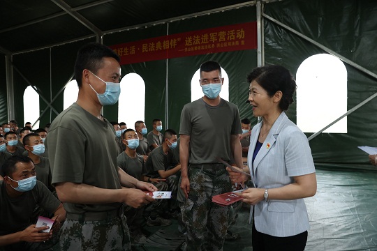 圖為武漢市洪山區(qū)司法局開展“送法進(jìn)軍營”活動。