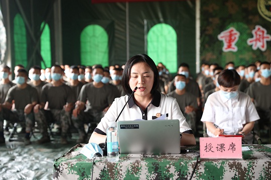 圖為“送法進(jìn)軍營”活動中律師事務(wù)所律師給現(xiàn)場官兵授課。