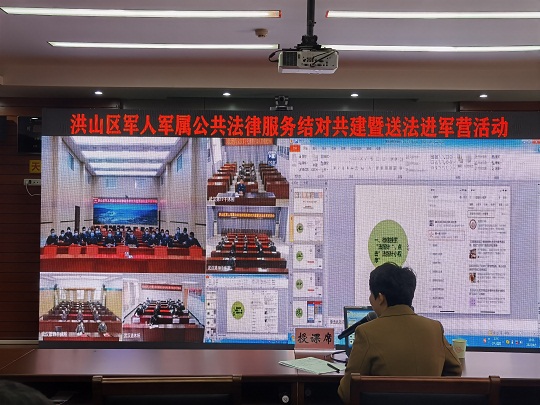 如何破解這些難題?武漢市洪山區(qū)發(fā)揮軍地聯(lián)系橋梁紐帶作用,協(xié)調(diào)洪山區(qū)委政法委、洪山區(qū)司法局和洪山區(qū)退役軍人事務(wù)局等單位,借力地方司法體系建設(shè)和軍地信息化建設(shè)成果,建成1個“線上”+“線下”多維度司法服務(wù)網(wǎng)絡(luò),以滿足部隊和軍人軍屬涉法涉訴問題需求。