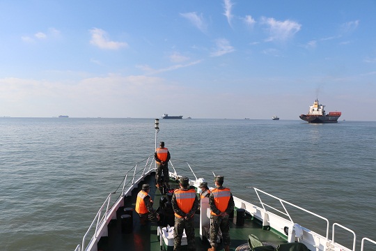 為進(jìn)一步提升巡邏管控質(zhì)效,維護(hù)轄區(qū)海域安全穩(wěn)定,山東威海海警局聯(lián)合海岸警察、漁政、海事等多家涉海職能單位,開展海上聯(lián)合巡航,對海上治安、海洋生態(tài)環(huán)境保護(hù)、海上重點(diǎn)目標(biāo)設(shè)施守護(hù)、漁船管控及嚴(yán)防疫情海上輸入等方面進(jìn)行重點(diǎn)檢查,以《中華人民共和國海警法》為重點(diǎn),對涉海人員開展普法教育,同時對漁船民進(jìn)行安全生產(chǎn)注意事項(xiàng)、疫情防控宣傳教育。涉海部門發(fā)揮各自職能優(yōu)勢,形成有效聯(lián)動,起到良好成效,得到了轄區(qū)涉海企業(yè)和人員的廣泛認(rèn)可。