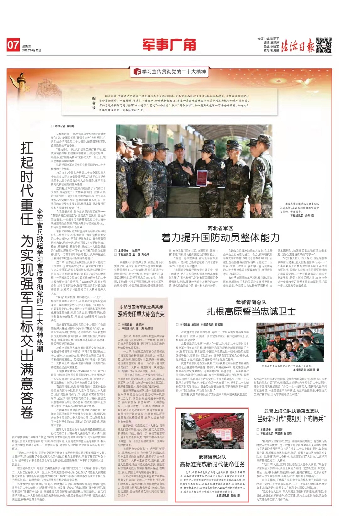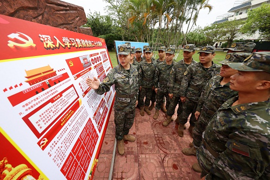 近日,武警海南總隊官兵通過宣傳板報、報紙等多種形式,認(rèn)真學(xué)習(xí)宣傳貫徹黨的二十大精神。全體官兵堅定地表示,要將學(xué)習(xí)宣傳貫徹黨的二十大精神煥發(fā)出的政治熱情,轉(zhuǎn)化為堅守工作崗位、認(rèn)真履行職責(zé)的精神動力,加強練兵備戰(zhàn)、磨礪打贏能力,高標(biāo)準(zhǔn)完成黨和人民賦予的新時代使命任務(wù)。