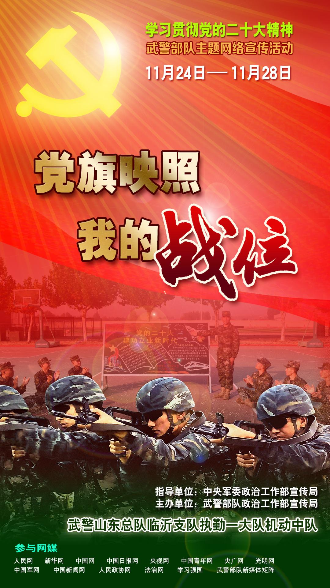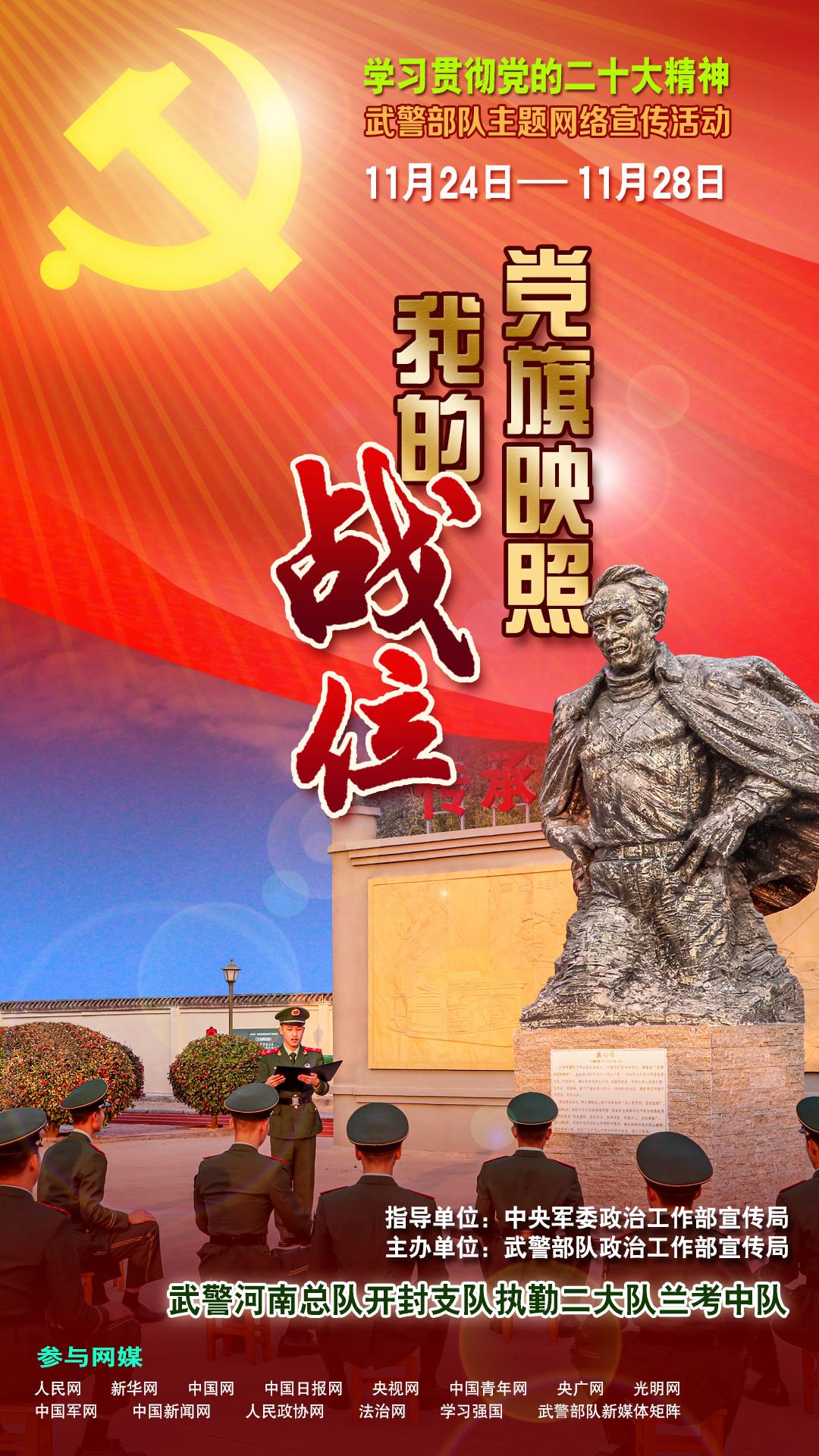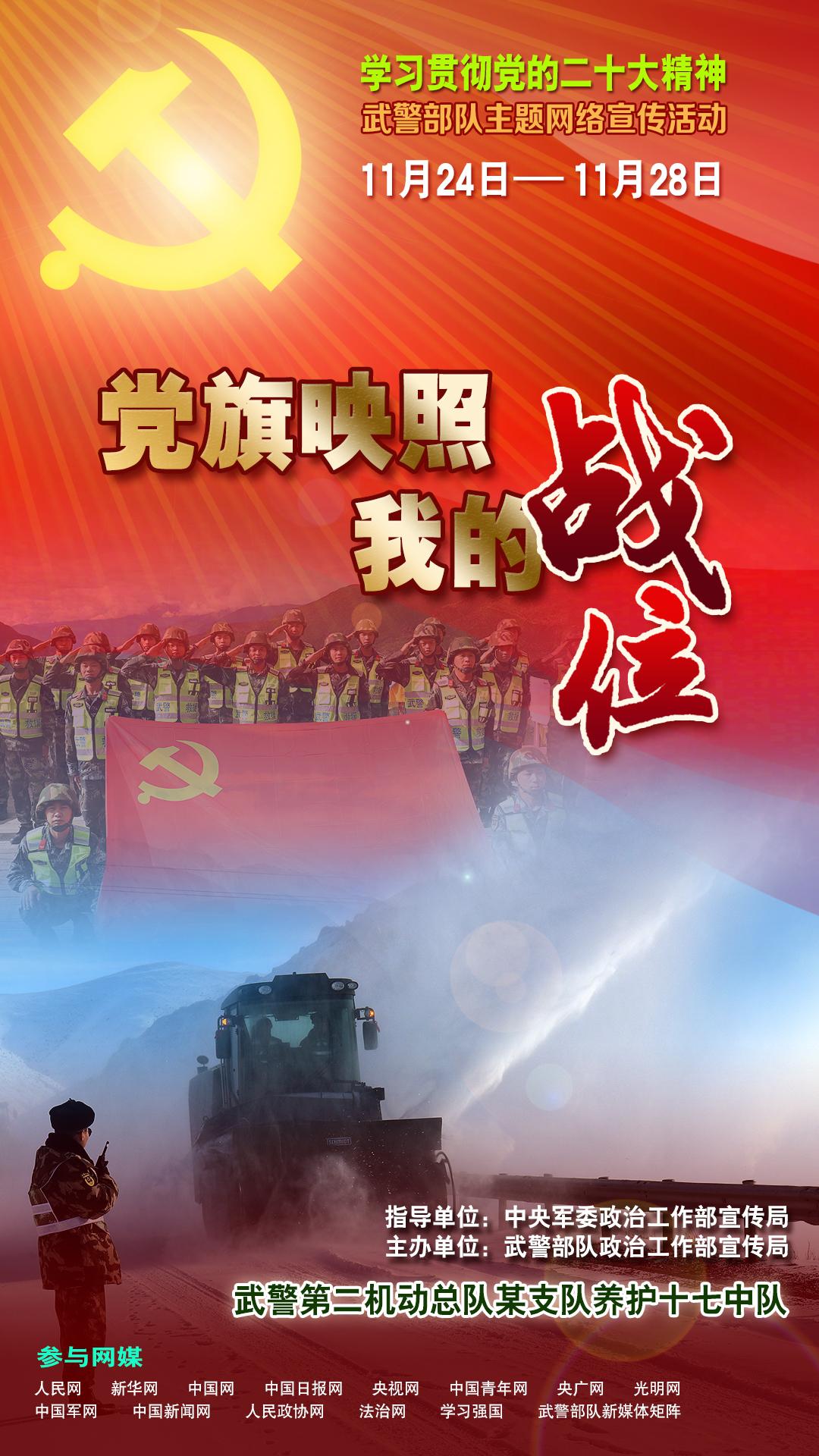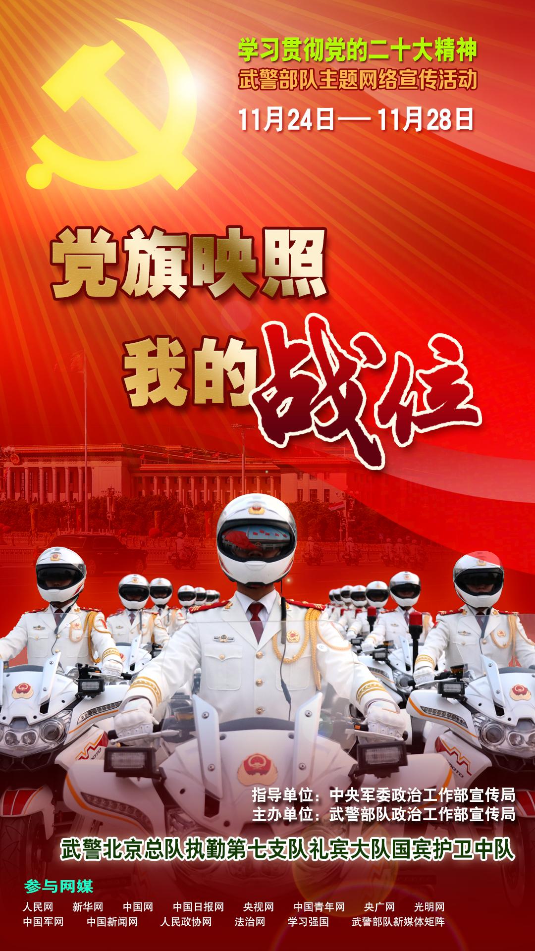 本報訊 記者廉穎婷 黨的二十大召開以來,從南國小島到北國邊疆,從茫茫草原到雪域高原,從繁華都市到偏遠(yuǎn)山村,駐守祖國各地的武警官兵正以最大的政治熱情和政治自覺,投入到深入學(xué)習(xí)貫徹黨的二十大精神中來。為充分展現(xiàn)學(xué)習(xí)貫徹的火熱場景和生動實(shí)踐,著力反映忠誠維護(hù)核心、矢志奮斗強(qiáng)軍的堅定意志和嶄新風(fēng)貌,近期武警部隊策劃組織了“黨旗映照我的戰(zhàn)位”主題網(wǎng)絡(luò)宣傳活動,邀請多家主流網(wǎng)絡(luò)媒體,對武警北京總隊執(zhí)勤第七支隊禮賓大隊國賓護(hù)衛(wèi)中隊、武警山東總隊臨沂支隊執(zhí)勤一大隊機(jī)動中隊、武警河南總隊開封支隊執(zhí)勤二大隊蘭考中隊和武警第二機(jī)動總隊某支隊養(yǎng)護(hù)十七中隊4個先進(jìn)基層單位進(jìn)行采訪報道。