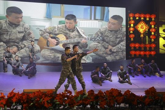 各類精彩紛呈的節(jié)目在晚會中輪番上陣,運用不同藝術(shù)形式,堅持兵寫兵、兵演兵、兵唱兵,冒著熱氣、緊貼一線、直抵人心,引起現(xiàn)場觀眾強烈共鳴。