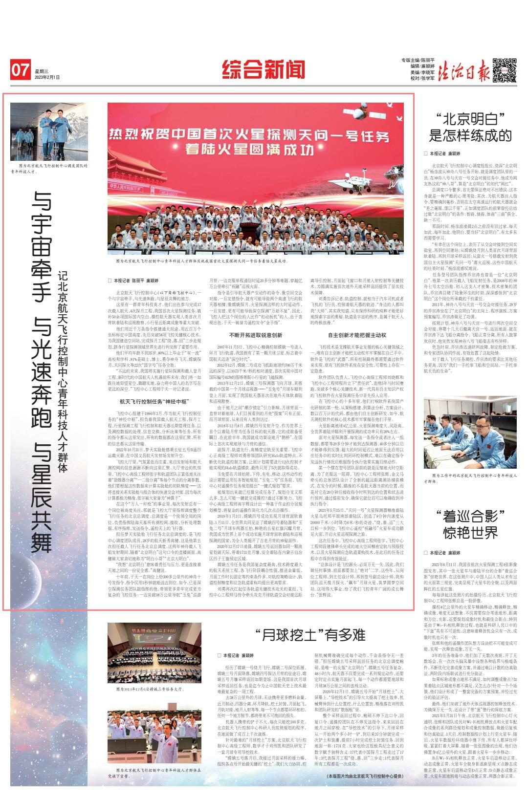 “總體設(shè)計是飛控源頭,必須萬無一失。因此,我們做任何事情,前面都要加上‘絕對’二字。這些年,從崗位工程師,到主任設(shè)計師,再到型號副總設(shè)計師,我和團(tuán)隊巡天攬月探火,‘飆車’月球火星,筑夢圓夢空間站。這項偉大事業(yè),給了我們飛控青年廣闊的成長舞臺。”張輝說。