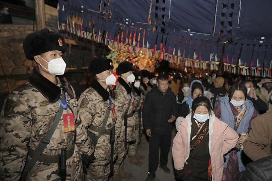 圖為武警青海總隊官兵在塔爾寺酥油花展期間堅守崗位、認(rèn)真執(zhí)勤。