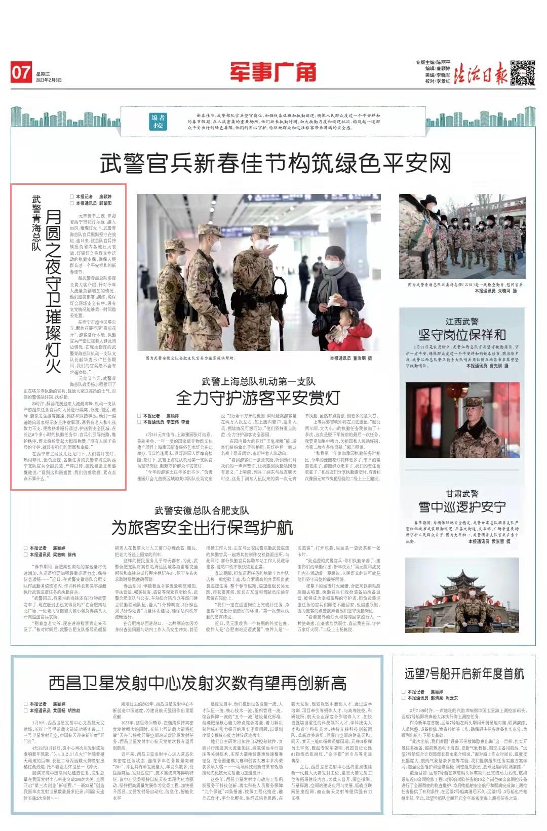 元宵節(jié)當(dāng)天,武警青??傟犝瘲钪緩娢繂柫苏谒査聢?zhí)勤的官兵,鼓勵大家以高昂的士氣、百倍的警惕站好崗、執(zhí)好勤。