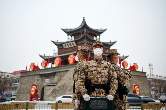 春節(jié)期間,為確保駐地安全穩(wěn)定,武警甘肅總隊(duì)酒泉支隊(duì)嚴(yán)密組織城市武裝聯(lián)勤巡邏,在各大街道、火車站、廣場(chǎng)等重要場(chǎng)所守護(hù)人民群眾安寧。圖為大年初一,武警酒泉支隊(duì)官兵在雪中執(zhí)勤。本報(bào)通訊員 侯崇慧 攝