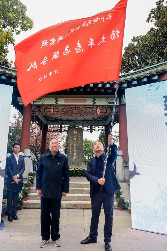 4月3日,在江蘇省南京市江北新區(qū)組織的清明祭英烈活動(dòng)中,楊太平烈士生前所在連老連長何恩會(huì),為江北新區(qū)長蘆街道六甲社區(qū)“楊太平志愿服務(wù)隊(duì)”授旗。