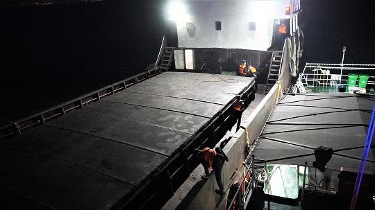 5月14日,上海崇明海警局執(zhí)法艇位上海吳淞口水域巡邏期間,發(fā)現(xiàn)一艘貨船由舟山航行至上海海域后關閉船舶自動識別系統(tǒng),且吃水較深,形跡可疑。執(zhí)法人員立刻鳴警喊話,要求其接受檢查,但該船無視警告拒不停船,企圖改變航向,加速逃竄。經(jīng)過近1個小時的追捕,兩艘執(zhí)法艇將其成功逼停后實施登臨檢查。經(jīng)查,該船裝載有牛肉、牛雜等凍品200余噸。