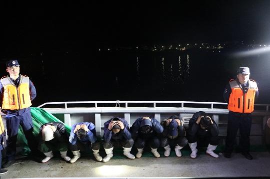 行動(dòng)期間,各單位重點(diǎn)加強(qiáng)渤??谖r蛄專項(xiàng)捕撈海域、中朝間海域、涉朝韓敏感水域、中韓暫定措施水域等重點(diǎn)方向監(jiān)管,集中打擊擅自變更作業(yè)場(chǎng)所捕撈漁船、涉漁“三無”船舶、非法入韓作業(yè)漁船,綜合運(yùn)用“科技管?!眻?zhí)法模式開展掃海行動(dòng),海警直升機(jī)同步開展空中巡查,艦機(jī)協(xié)同海空一體執(zhí)法,見警率、登檢率、查處率顯著提高。同時(shí),各級(jí)海警機(jī)構(gòu)強(qiáng)化與漁政、公安、市場(chǎng)監(jiān)管等部門配合協(xié)作,健全完善信息通報(bào)、工作會(huì)商、聯(lián)合辦案等工作機(jī)制,形成全鏈條打擊、海陸聯(lián)動(dòng)、一體執(zhí)勤新格局。