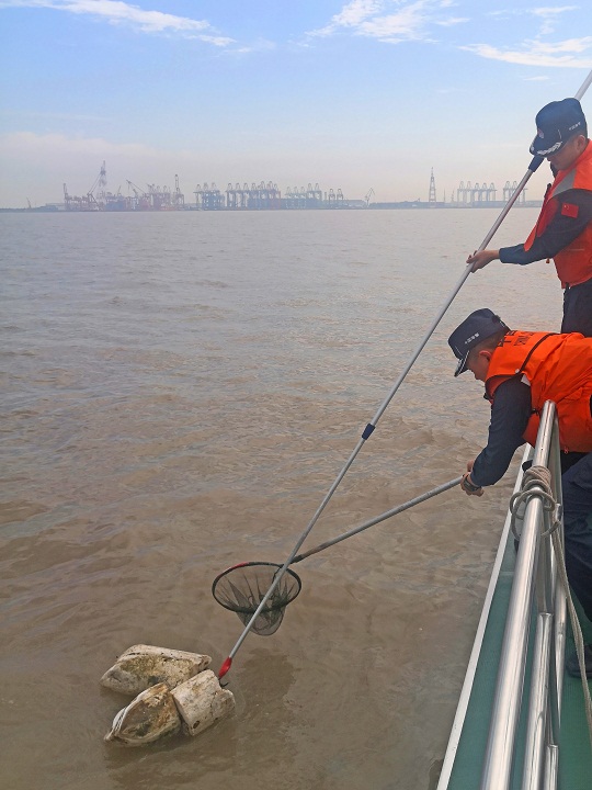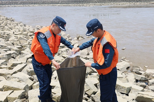 在日常轄區(qū)巡邏時(shí),上海海警局執(zhí)法員持續(xù)發(fā)揮“海洋凈化小分隊(duì)”作用,主動(dòng)為海洋“清潔”,對(duì)附近航道內(nèi)及海岸堤壩上的各類垃圾進(jìn)行清理。