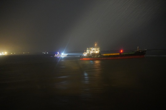 6月17日17時,上海海警局獲悉在長江口海域存在涉嫌走私活動,在上海海事、農(nóng)委等部門協(xié)助下,該局成功鎖定目標(biāo)船并立刻派遣奉賢海警局執(zhí)法艇前往其所在海域。22時許,執(zhí)法艇到達(dá)目標(biāo)海域后,一艘船只立刻改變航向。執(zhí)法艇迅速靠前并對其喊話表明身份,要求停船接受檢查。該船拒不停船,加速逃竄。執(zhí)法艇加速追上,于23時許成功登臨控制該船。經(jīng)檢查,該船共有6名船員,裝有12個集裝箱,裝載豬耳朵等凍品約400噸,案值約2000萬元。