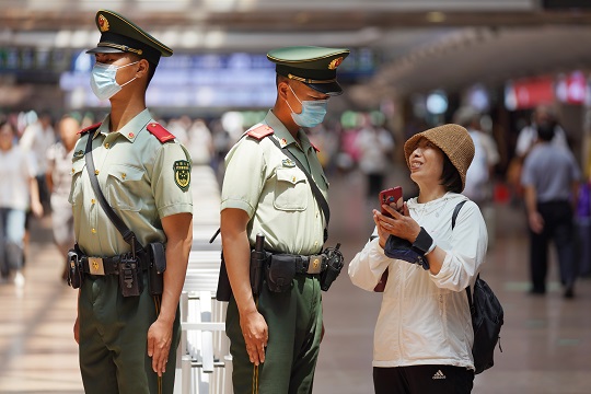 圖為北京豐臺(tái)站武警正在警惕執(zhí)勤。