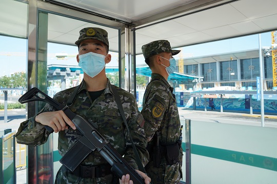 圖為烈日下,武警官兵在認(rèn)真執(zhí)勤。