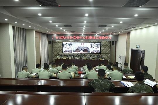 在黨委中心組帶機關(guān)理論學習、思想政治教育和“政策大解讀、法規(guī)大講堂、業(yè)務大培訓”的“三大”學習活動中,武警廣安支隊黨委機關(guān)將人民武裝警察法、《中國共產(chǎn)黨軍隊黨的建設條例》等法律法規(guī)納入學習內(nèi)容,提升黨委依法決策、機關(guān)依法指導能力水平。