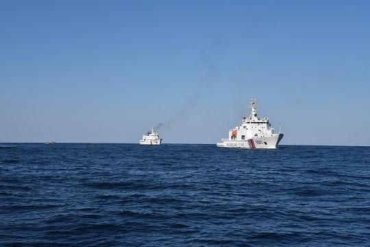 圖為海警艦艇開展執(zhí)法巡航。江壯志 劉官正 攝