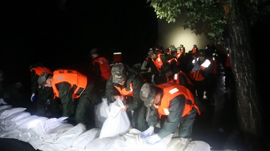 連日來,黑龍江省牡丹江市受連續(xù)降雨疊加上游洪水過境影響多地出現(xiàn)險(xiǎn)情。鏡泊湖水庫大壩出現(xiàn)溢流,洪水危及水庫東側(cè)的瀑布村。牡丹江市污水處理廠東北側(cè)江水水位上漲,洪水逼近公路,即將倒灌進(jìn)廠區(qū),并伴有管涌出現(xiàn),周圍居民生命財(cái)產(chǎn)安全受到嚴(yán)重威脅。武警黑龍江總隊(duì)牡丹江支隊(duì)兩百余名官兵接到命令后,迅即出動(dòng)前往抗洪一線。