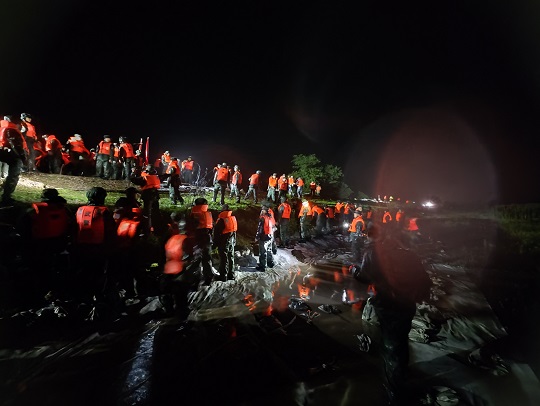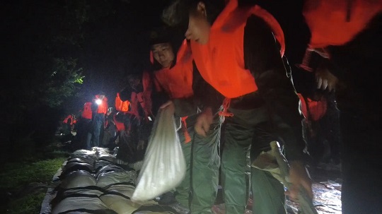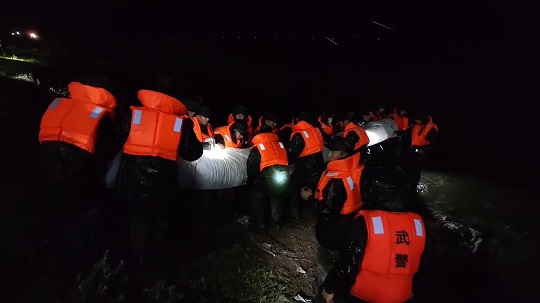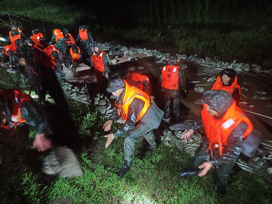 8月4日19時(shí)25分,武警黑龍江總隊(duì)齊齊哈爾支隊(duì)出動(dòng)200余名官兵,動(dòng)用車輛10余臺(tái),第一時(shí)間到達(dá)現(xiàn)場(chǎng)。連夜奮戰(zhàn)5小時(shí),雅魯河河道兩側(cè)壘筑沙袋4700余個(gè),筑起長280米,高0.5米的阻隔沙墻,處置管涌2處,完成13米道路阻堤任務(wù),利用無紡布封補(bǔ)滲點(diǎn)110米,筑起守護(hù)人民群眾的安全堤壩。截至目前,搶險(xiǎn)救援工作仍在緊張進(jìn)行中。
