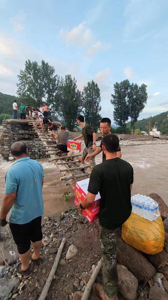 8月3日以來,武警河北總隊保定支隊緊急出動兵力奔赴淶水野山坡展開救援。由于山路被毀,官兵緊急修建簡易橋梁,打通救援道路,采取肩扛手抬等方式晝夜連續(xù)徒步向各受災(zāi)村落搬運救災(zāi)物資,救助受困群眾。截至目前,已累計搬運救災(zāi)物資20余噸。