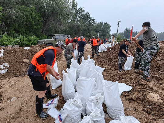 與此同時(shí),武警黑龍江總隊(duì)哈爾濱支隊(duì)200余名官兵連夜奮戰(zhàn)9小時(shí),在螞蟻河周邊壘筑沙袋2.8萬(wàn)余個(gè),筑起1.3米高阻隔沙墻600余延長(zhǎng)米,保證了當(dāng)?shù)厝嗣袢罕娚?cái)產(chǎn)安全。8月4日10時(shí),全體參戰(zhàn)官兵轉(zhuǎn)戰(zhàn)螞蟻河西側(cè)綏滿公路一線,進(jìn)行1000余米的加固堤壩任務(wù),防止河水漫堤。