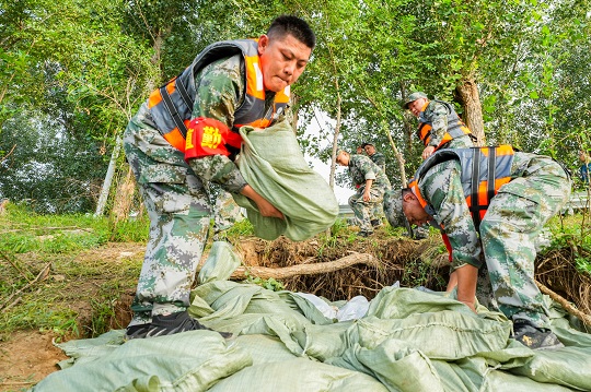 在河北省涿州市,中部戰(zhàn)區(qū)陸軍第82集團(tuán)軍某旅先后擔(dān)負(fù)望海莊村、朱莊村、東茨村等地堤壩搶險(xiǎn)加固、險(xiǎn)情排除、巡堤護(hù)坡任務(wù)。