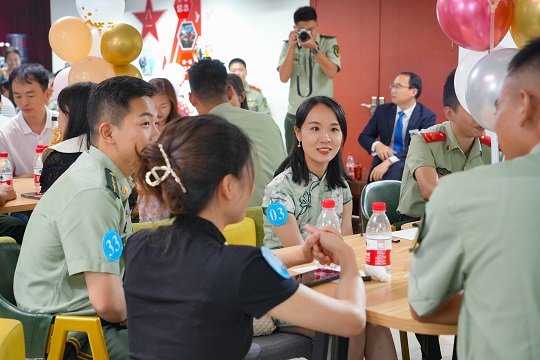 踩著音符,迎著微風(fēng),應(yīng)邀出席的女嘉賓走進(jìn)廣東海警局,在海天的見證下共赴一場浪漫的海疆之約。在“相約鵬城海疆·共敘幸福人生”交友聯(lián)誼會活動現(xiàn)場,男女嘉賓領(lǐng)取屬于自己的“緣分號碼牌”,圍坐交流。廣東海警局執(zhí)法員馬運(yùn)澤來到女嘉賓的座位旁,大方介紹自己,女嘉賓也積極回應(yīng)。經(jīng)過一番交流,雙方互有好感,一同拍下合影。