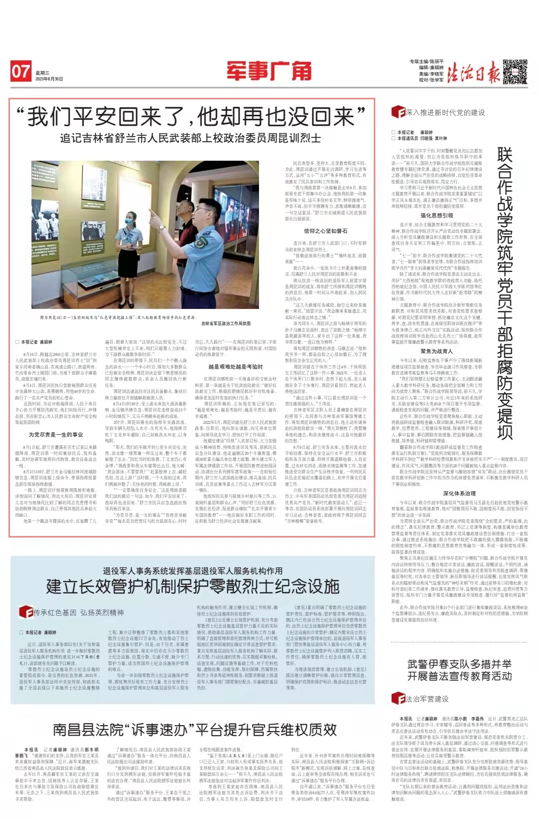 “我與周政委第一次接觸是去年9月,參加部里專武干部集中辦公會(huì)。他給我的第一印象是軍味十足,話不多但樸實(shí)無(wú)華,特別接地氣。聲音不高,但字字鏗鏘有力,思維清晰敏捷,沒(méi)一句空話套話?!笔嫣m市北城街道人民武裝部部長(zhǎng)白麗麗說(shuō)。