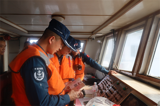 圖為查驗(yàn)船員證書。