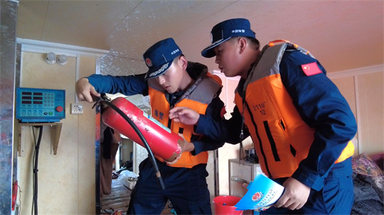 圖為海警執(zhí)法員排除安全隱患。