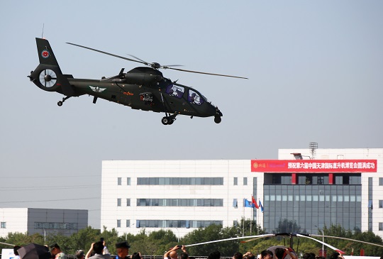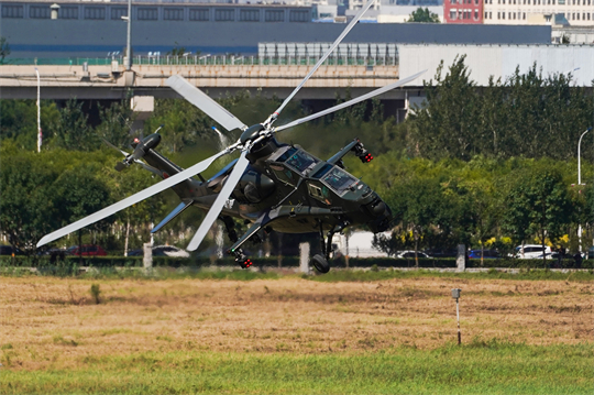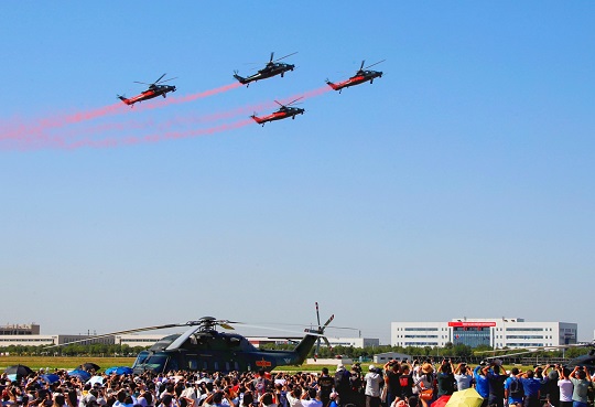 圖為陸軍“風雷”飛行表演隊直-10武裝直升機進行飛行表演。張永進 攝