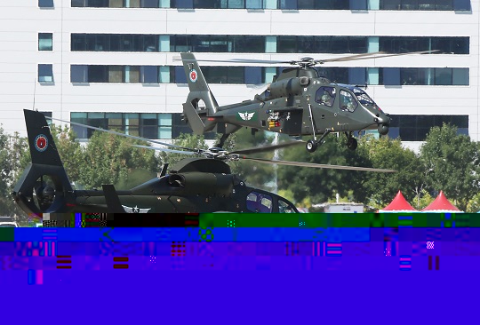 圖為陸軍“風雷”飛行表演隊直-19武裝直升機進行飛行表演。張永進 攝