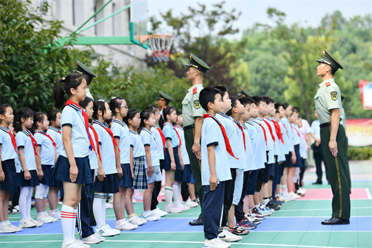 9月11日,武警安徽總隊合肥支隊聯(lián)合駐地學校開展“踔厲奮發(fā)強國防 勇毅前行向復興”為主題的全民國防教育進軍營活動,通過普及國防知識、參觀武器裝備、學做軍事動作等,增強學生國防意識。
