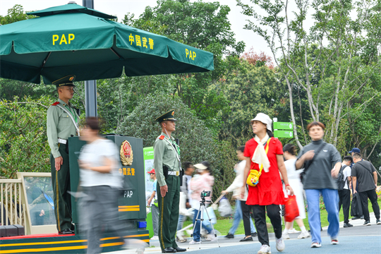 第十四屆中國(合肥)國際園林博覽會于9月26日在安徽省合肥市駱崗公園開幕。本屆園博會以“生態(tài)優(yōu)先 百姓園博”為主題,為期3個月,38個城市展園充分展現了各地園林特色,吸引大量游客前來參觀。連日來,武警安徽總隊合肥支隊執(zhí)勤官兵在第十四屆中國(合肥)國際園林博覽會現場定點警戒執(zhí)勤。