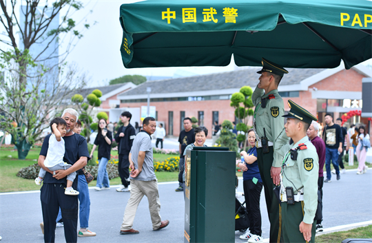 武警合肥支隊精心選派執(zhí)勤官兵,采取定點警戒與武裝巡邏相結合的方式維護現場秩序,熱情主動為游客提供便民服務,成為園博會上一道靚麗的風景線。