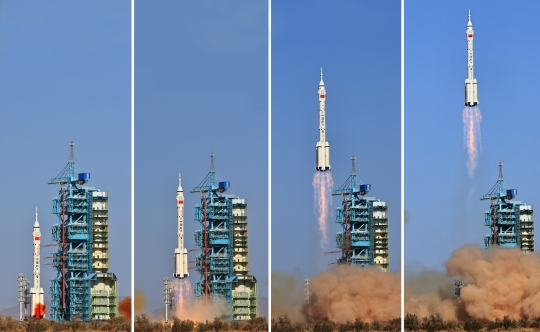圖為10月26日,搭載神舟十七號(hào)載人飛船的長(zhǎng)征二號(hào)F遙十七運(yùn)載火箭在酒泉衛(wèi)星發(fā)射中心發(fā)射成功。新華社記者 李剛 攝