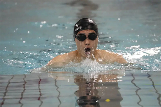 哨聲一響,泳池里激起無(wú)數(shù)浪花,選手們個(gè)個(gè)宛如蛟龍出海。他們劈波斬浪,你追我趕,在偌大的游泳池中盡顯身手。