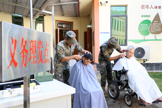 圖為武警官兵為敬老院老人義務理發(fā)。