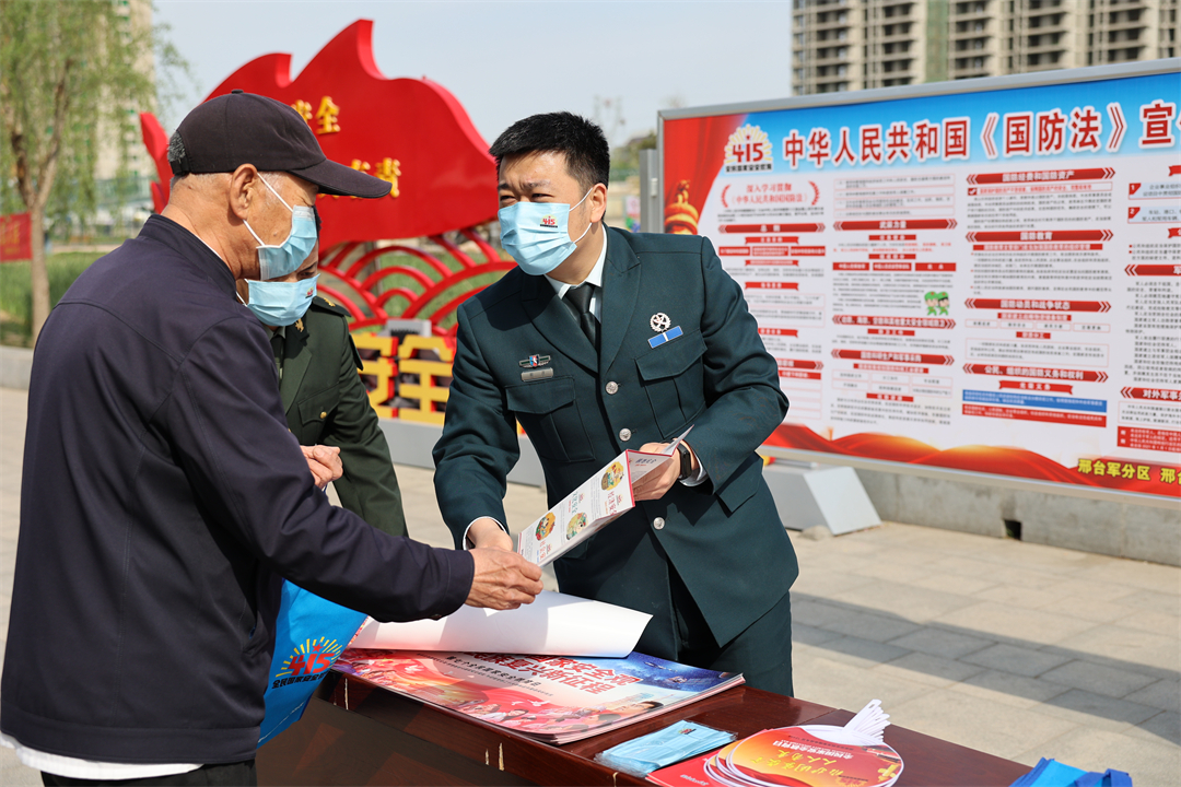 圖為邢臺(tái)軍分區(qū)結(jié)合全民國(guó)家安全教育日開展宣傳活動(dòng)。張明 攝